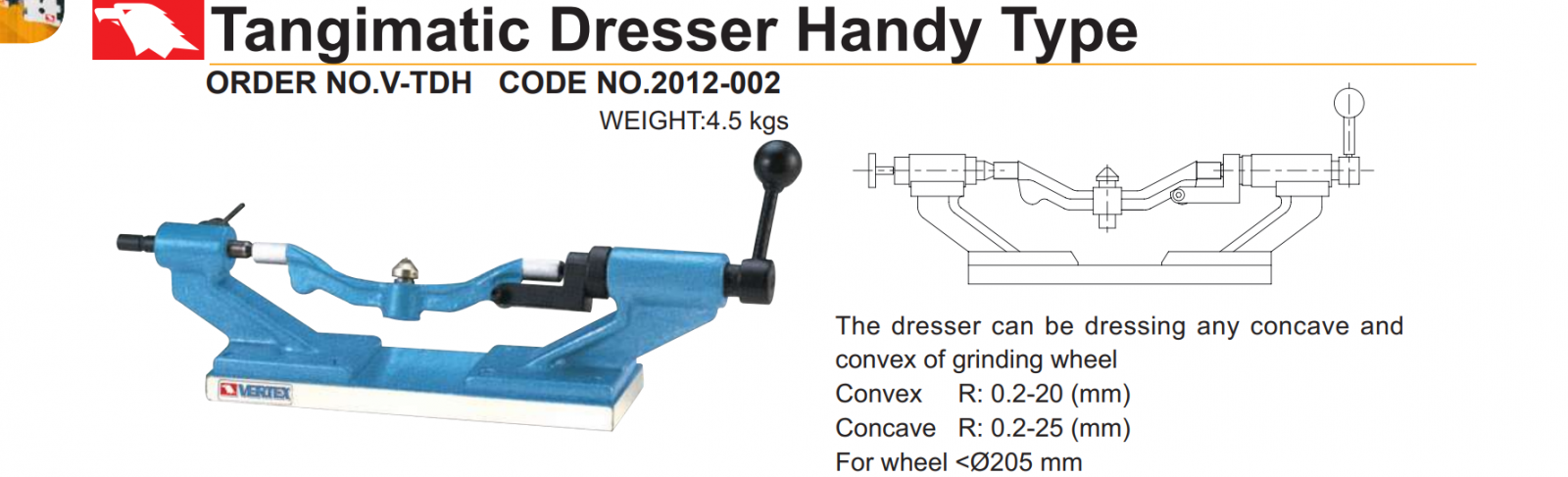 – Đường kính đá mài lớn nhất mà đồ gá sửa đá mài VERTEX sửa được là: F205mm.