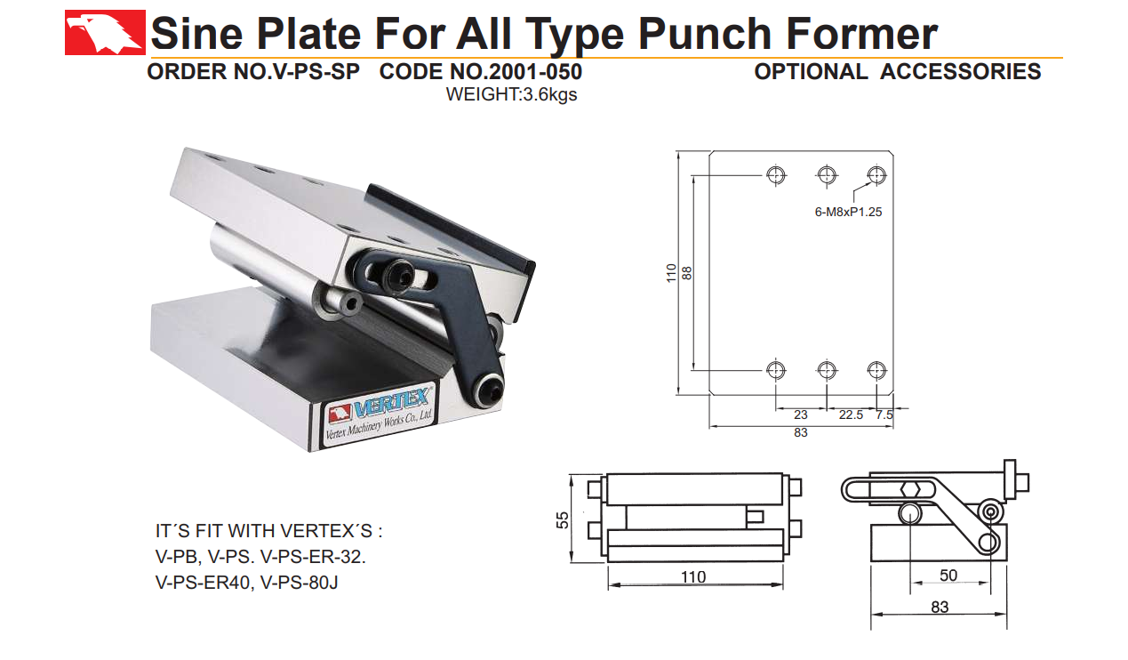 Bàn nghiêng cho dụng cụ sửa đá Vertex V-PS-SP dùng để làm chân đế gá kẹp cho các dụng cụ sửa đá.