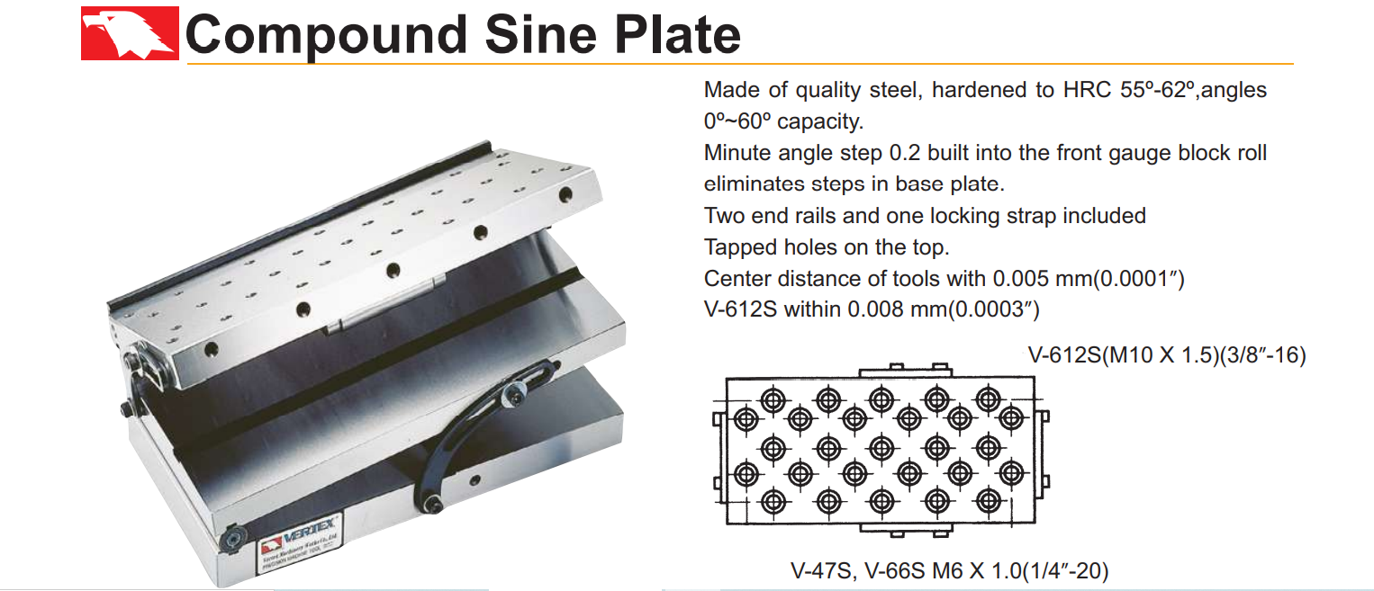 Bàn nghiêng lỗ ren Vertex V- 47S dùng để gá các ê tô máy mài trong quá trình mài nghiêng.