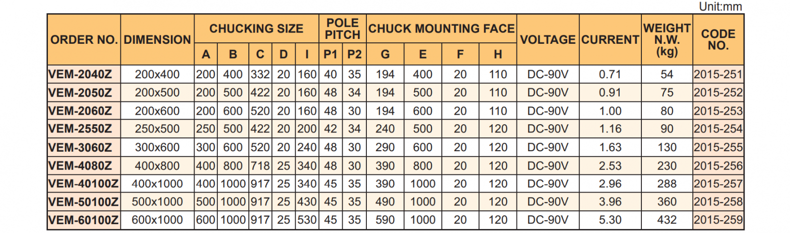 Bàn từ điện 200×400 lực kẹp lớn Vertex VEM-2040Z dùng để gá các chi tiết trong quá trình gia công với lực lớn.