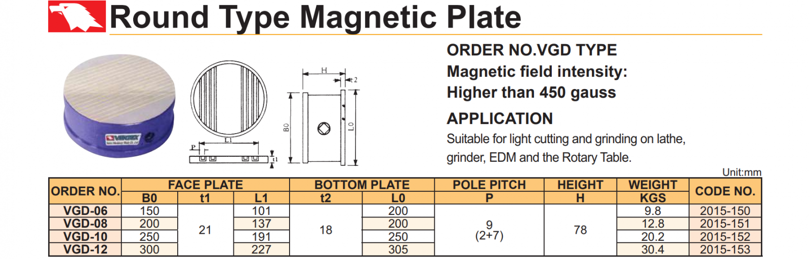 Bàn từ tròn 150mm Vertex VGD-06 dùng để gá các chi tiết trong quá trình mài.
