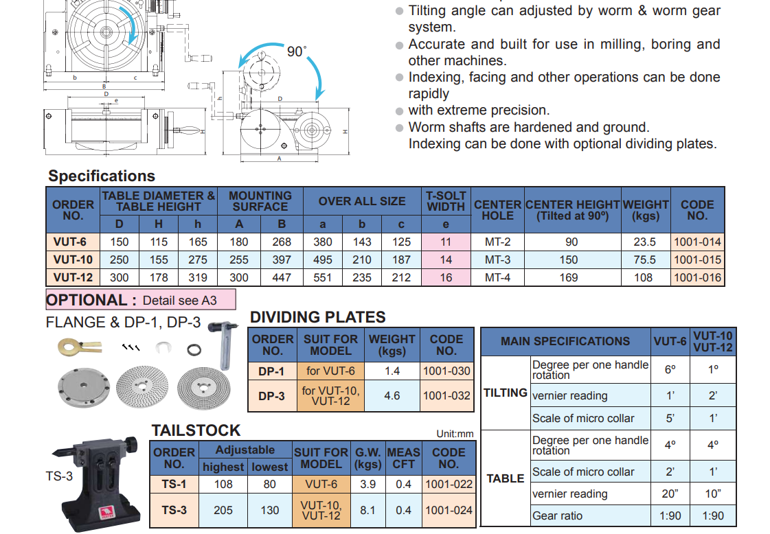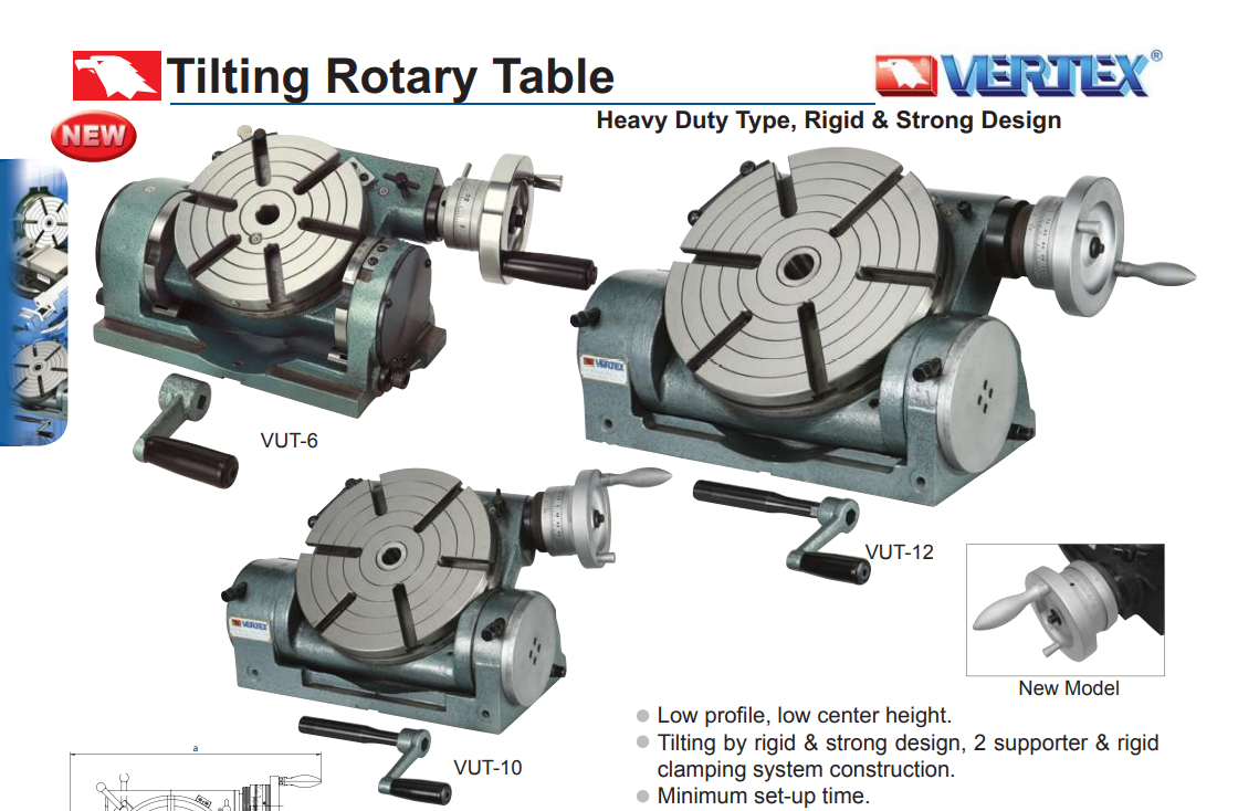 Bàn xoay nghiêng mã VUT-6 được nhập khẩu trực tiếp từ hãng Vertex Đài Loan, bàn xoay này là sản phẩm không thể thiếu cho việc gia công cơ khí trong các phân xưởng sản xuất. Sản phẩm được phân phối trên toàn quốc