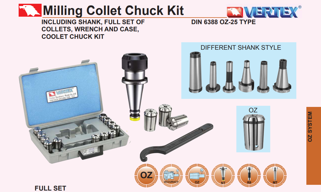 – Collet OZ-25 theo tiêu chuẩn DIN 6388 (xem sản phẩm Collet OZ).