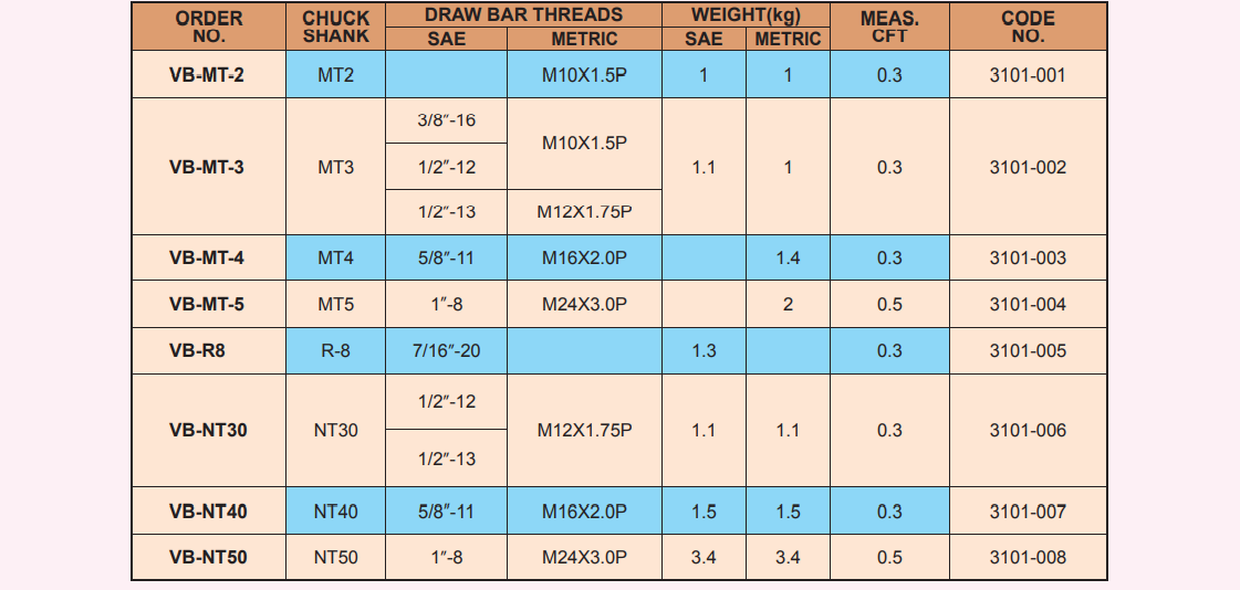 DRAW BAR : Kiểu ren của bầu kẹp lắp với ti rút của máy.