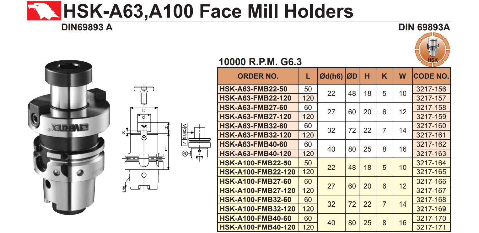 – Tốc độ cao: 10.000 vg/ph. Cân bằng của bầu kẹp HSK đạt G6.3.