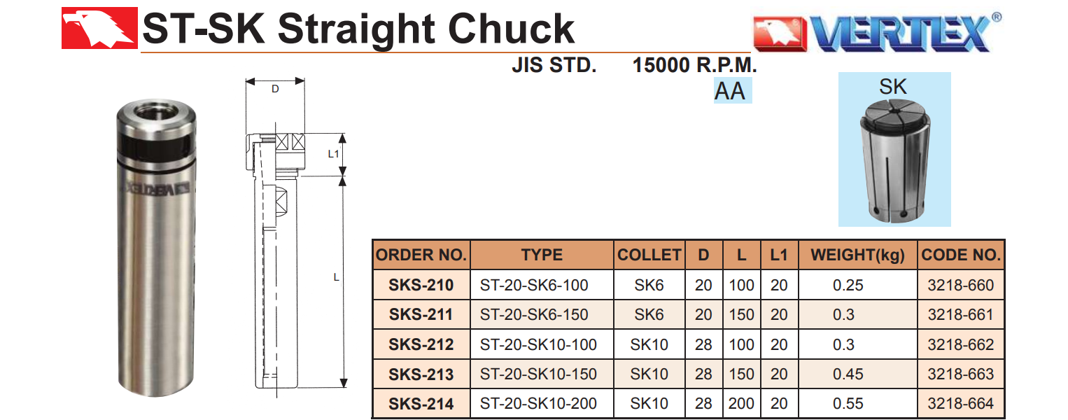 BẦU KẸP DAO PHAY CHUÔI TRỤ VERTEX SKS-210; SKS-211; SKS-212; SKS-213; SKS-214; SKS-231; SKS-232; SKS-233; SKS-234.