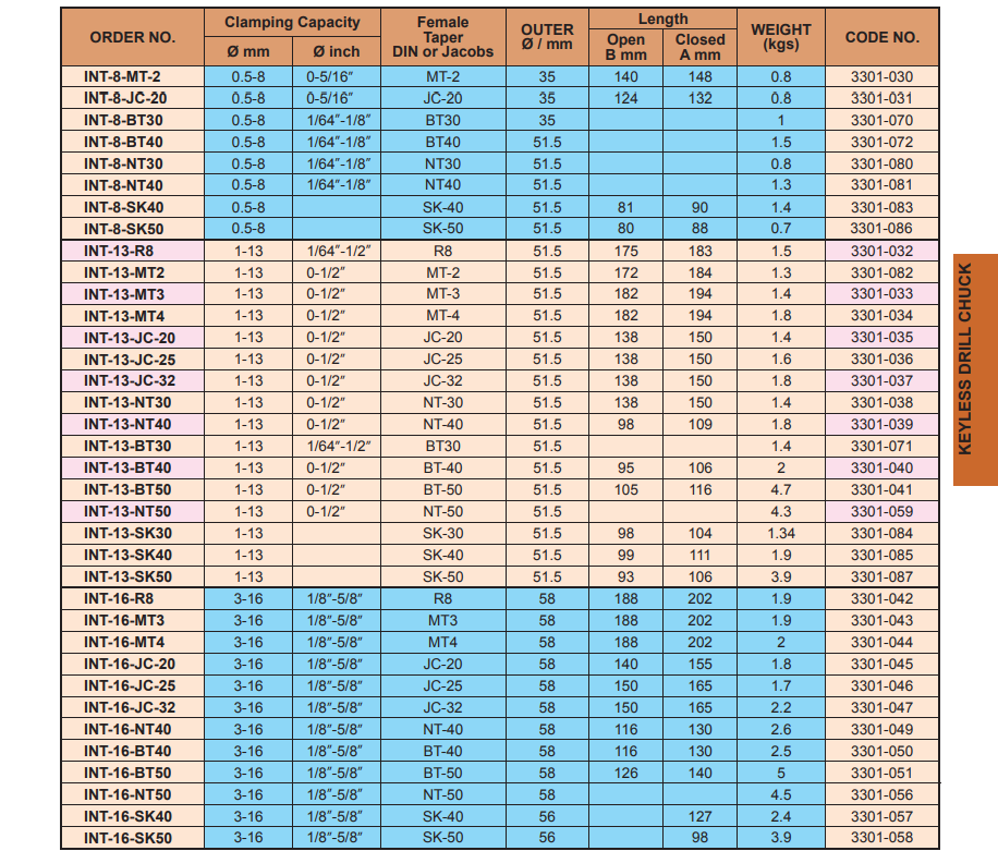 – Có đầy đủ các kiểu chuôi côn để phù hợp cho từng máy gia công:INT