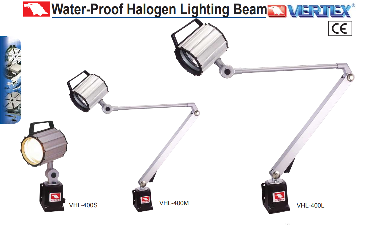 – Bộ đèn Halogen chống nước, chống bụi VHL-400L; VHL-400M; VHL-400S; VHL-500L; VHL-500M; VHL-500S của VERTEX dùng để chiếu sáng khu vực làm việc của máy gia công cơ khí.