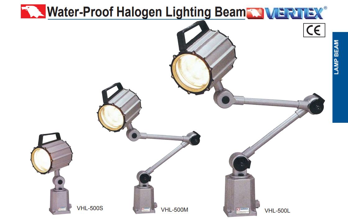 – Bộ đèn Halogen chống nước, chống bụi VHL-400L; VHL-400M; VHL-400S; VHL-500L; VHL-500M; VHL-500S của VERTEX dùng để chiếu sáng khu vực làm việc của máy gia công cơ khí.