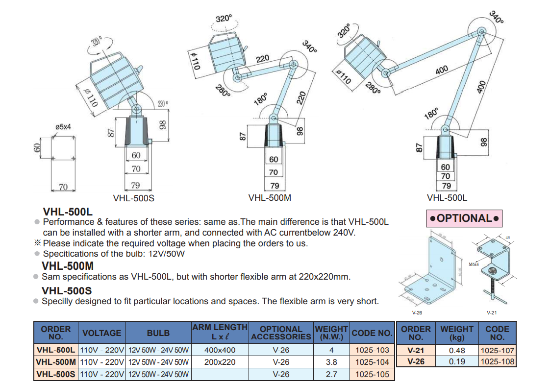 Mã sản phẩm: VHL-500L; VHL-500M; VHL-500S
