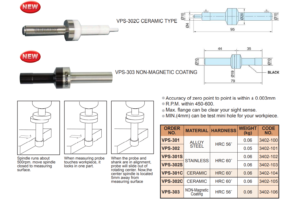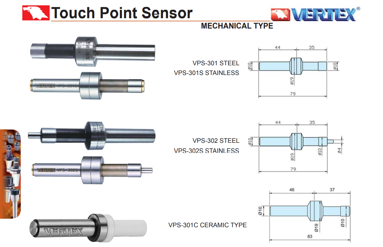– Cảm biến VPS-301C, VPC-302C đầu chạm làm bằng gốm kim loại (Ceramic).