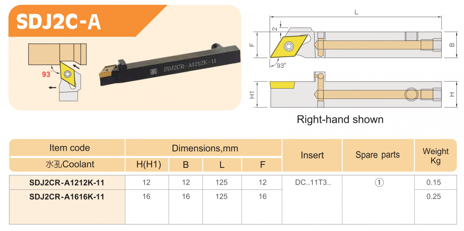Cán dao tiện SHAN GIN SDJ2CR-A1212K-11 , SDJ2C-A SDJ2CR-A1212K-11