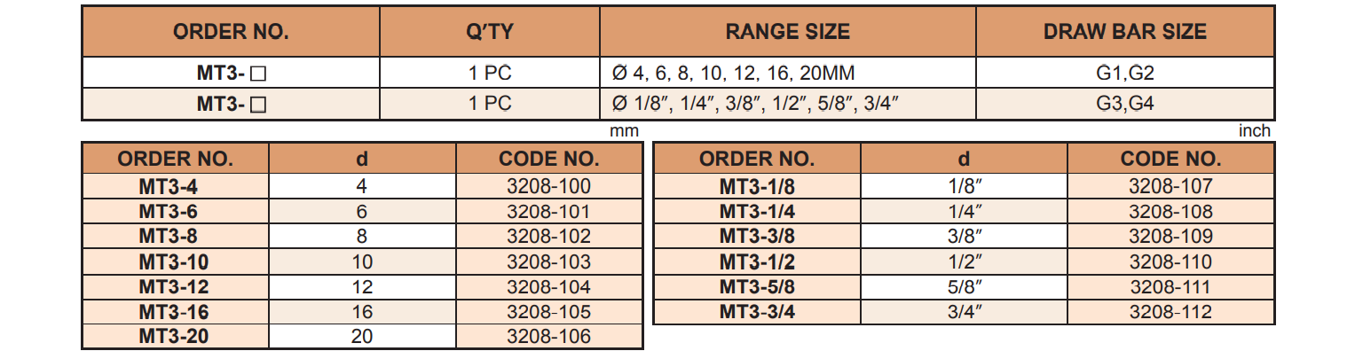 Mã sản phẩm: MT3-1/2, MT3-5/8, MT3-3/4