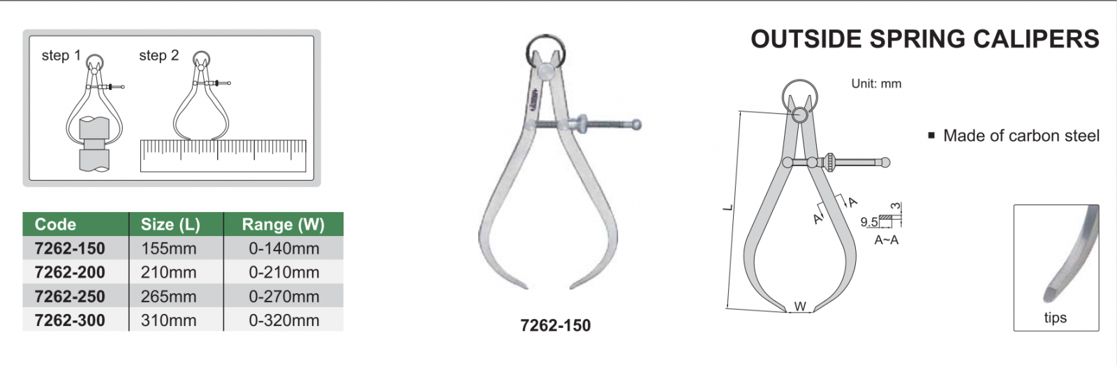 Compa INSIZE 7262-150 , OUTSIDE SPRING CALIPERS 7262-150