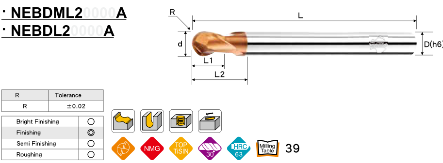 Dao phay ngón CMTéc dòng N620 là dòng dụng cụ cắt đa dụng cho hiệu suất cực cao tạo bề mặt chi tiết mịn bóng, dụng cụ cắt này áp dụng cho công việc gia công nhiều vật liệu như các loại thép hợp kim, thép gang, thép dẻo, Inox ... thích hợp gia công độ chính xác cao, đáp ứng được những tiêu chuẩn khắt khe trong gia công.