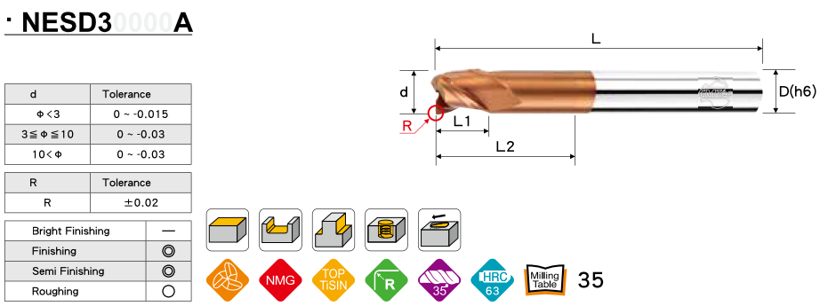 Dao phay ngón CMTéc dòng N620 là dòng dụng cụ cắt đa dụng cho hiệu suất cực cao tạo bề mặt chi tiết mịn bóng, dụng cụ cắt này áp dụng cho công việc gia công nhiều vật liệu như các loại thép hợp kim, thép gang, thép dẻo, Inox ... thích hợp gia công độ chính xác cao, đáp ứng được những tiêu chuẩn khắt khe trong gia công.