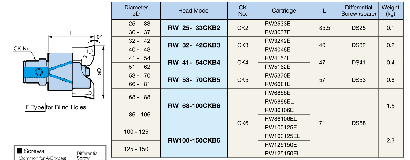 | 125-150 | RW100-150CKB6 | CK6 | RW125150A | 71 | DS68 | 2.3 |