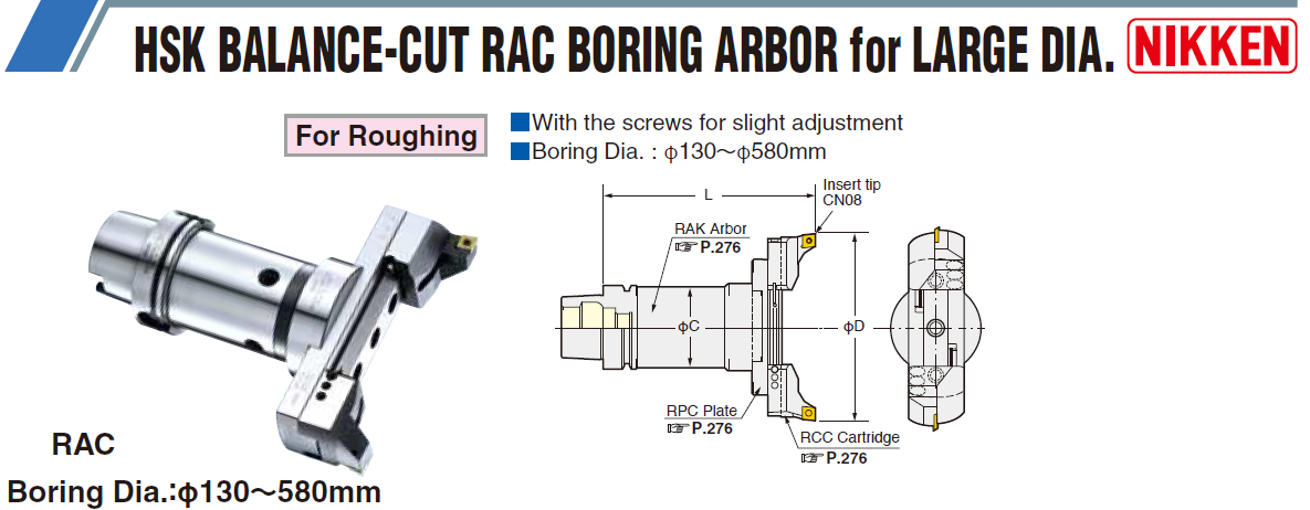 For HeavyDutyBoringof Iron andCastIron RCC-130 ×2 Insert TipCN08 |