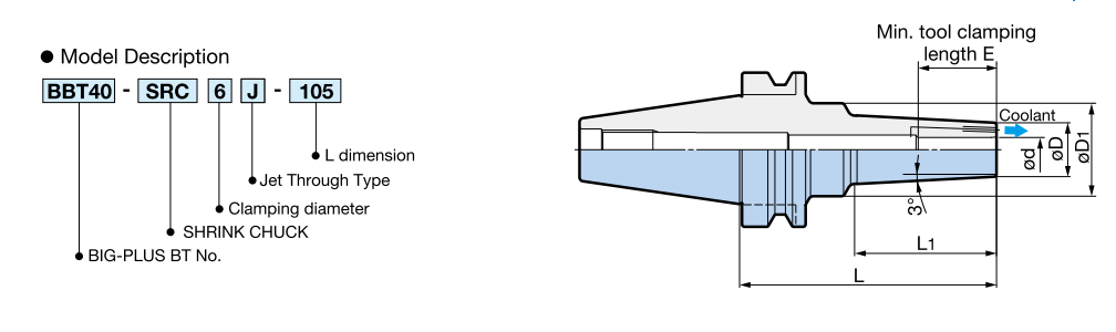 | BBT SHANK Model | φd | φD | ΦD1 | L | L1 | E |