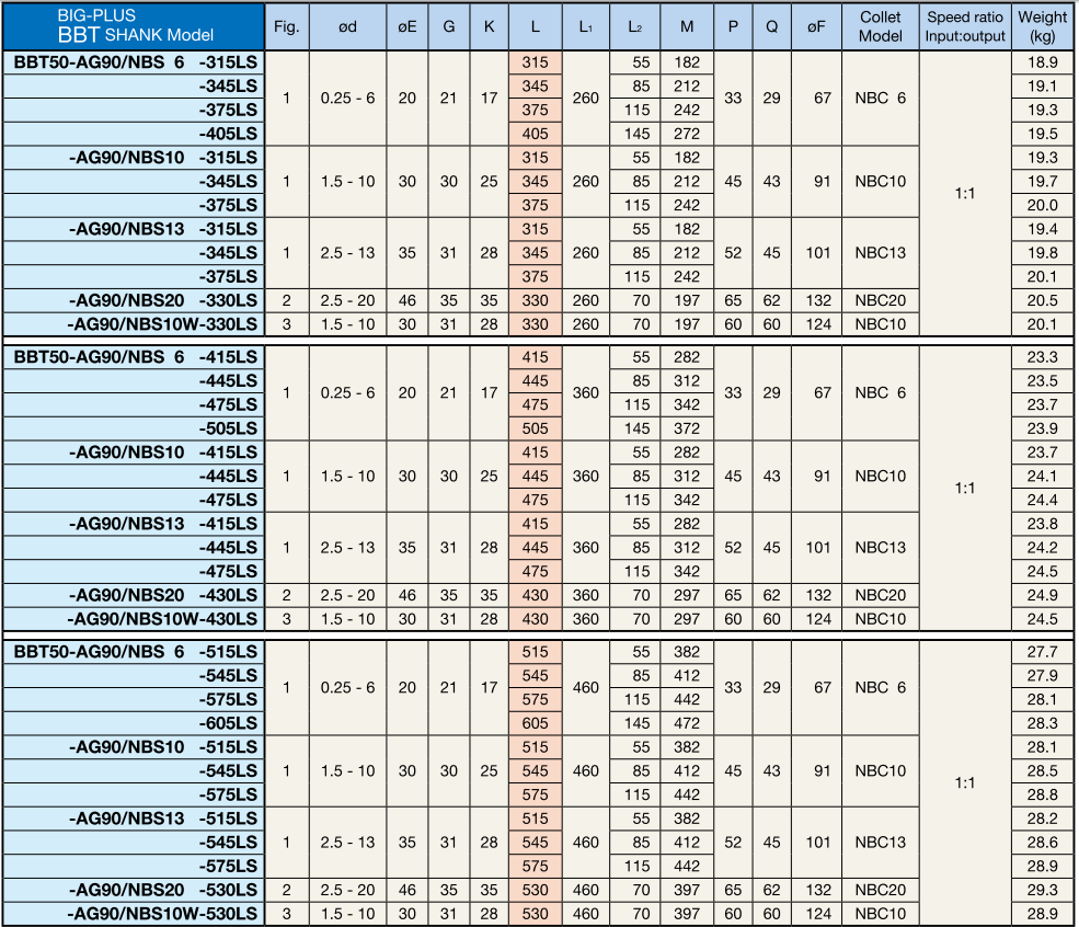 Mã sản phẩm: BBT50-AG90/NBS13-515LS , -545LS , -575LS