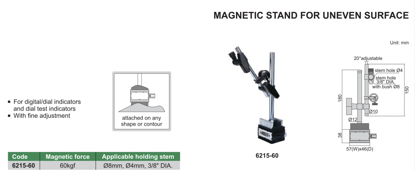 Đế từ gá đồng hồ so được hãng INSIZE sản xuất với chất lượng cao, sản phẩm được sử dụng nhiều trong các xưởng gia công cơ khí, được phân phối trên toàn quốc