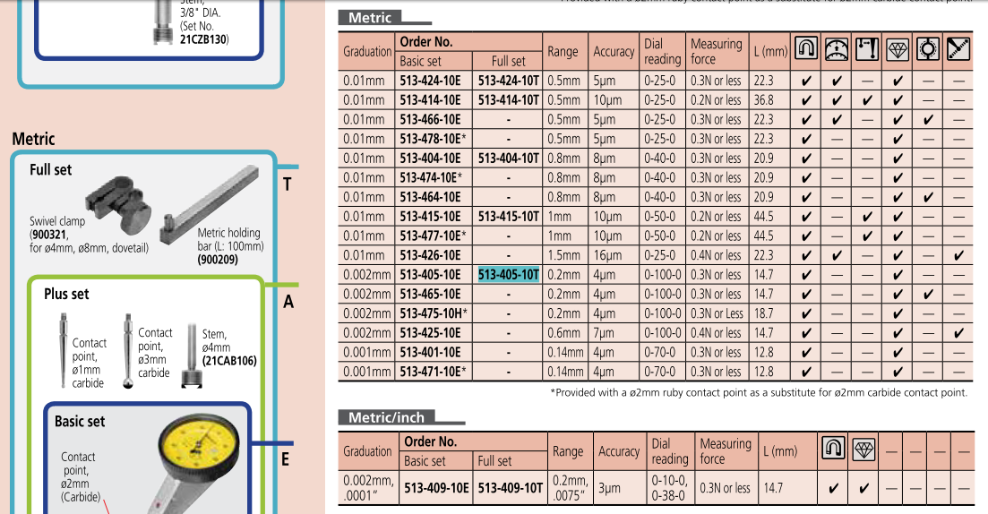 Mã hàng 513-464-10E là đồng hồ so chân gập 0.8mm/0.01mm