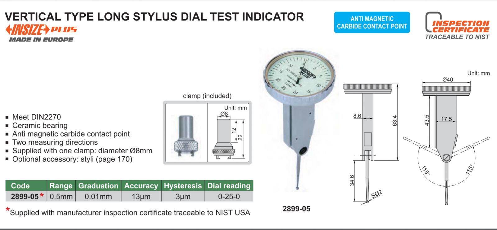 Đồng hồ so chân gập INSIZE là loại đông hồ so ứng dụng đo độ dơ, độ lệch trong gia công và sản xuất cơ khí