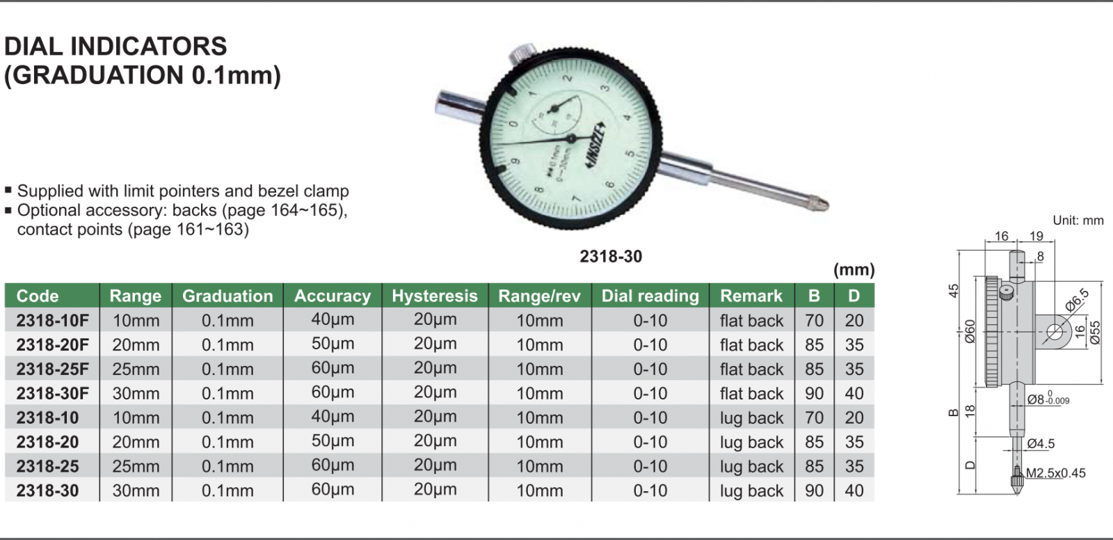Đồng hồ so chân gập INSIZE là loại đông hồ so ứng dụng đo độ dơ, độ lệch trong gia công và sản xuất cơ khí