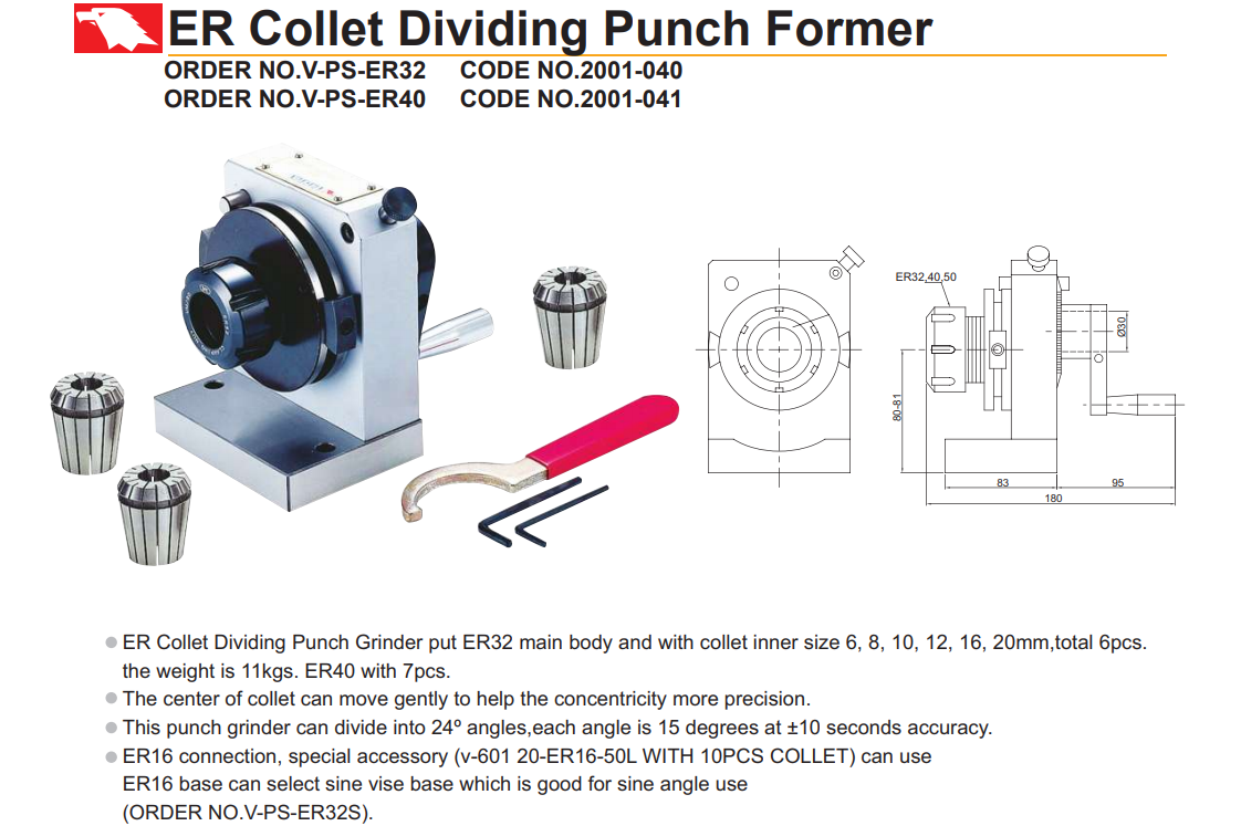 Dụng cụ sửa đá collet Vertex V-PS-ER32 dùng collet để gá kẹp các mũi sửa đá và sửa đá mài theo các biên dạng khác nhau theo yêu cầu sử dụng