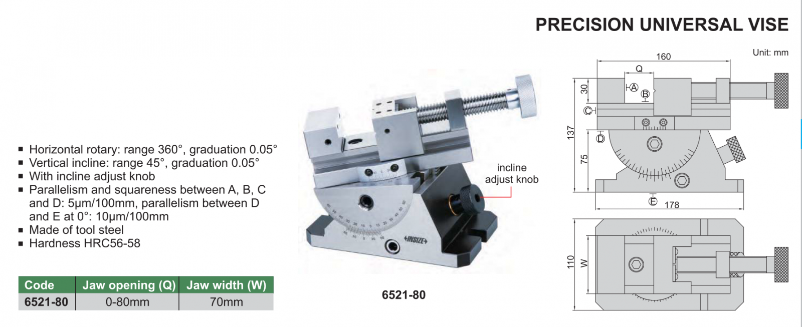 Ê-tô (bàn kẹp) chính xác cao INSIZE 6521-80 , PRECISION UNIVERSAL VISE 6521-80