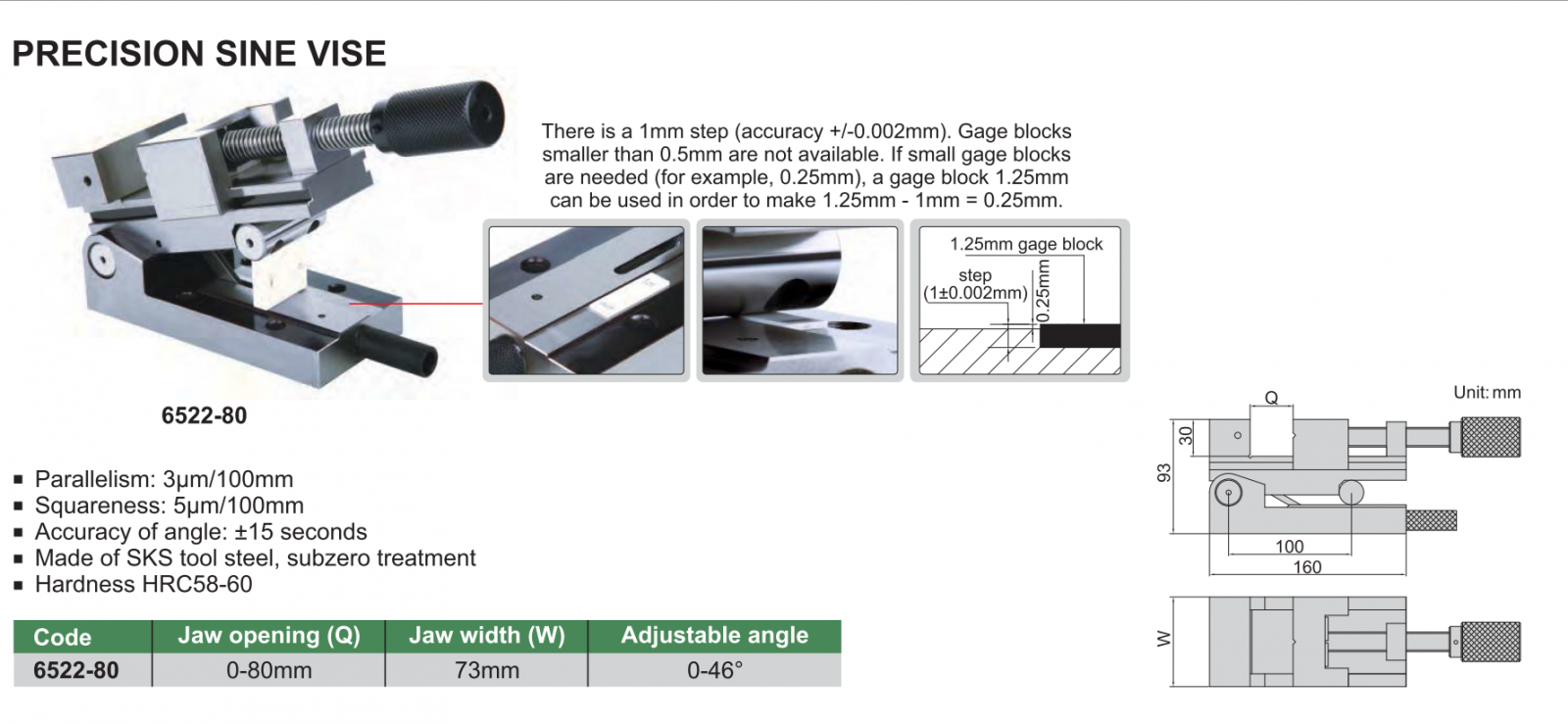 Ê-tô (bàn kẹp) chính xác cao INSIZE 6522-80 , PRECISION SINE VISE 6522-80.