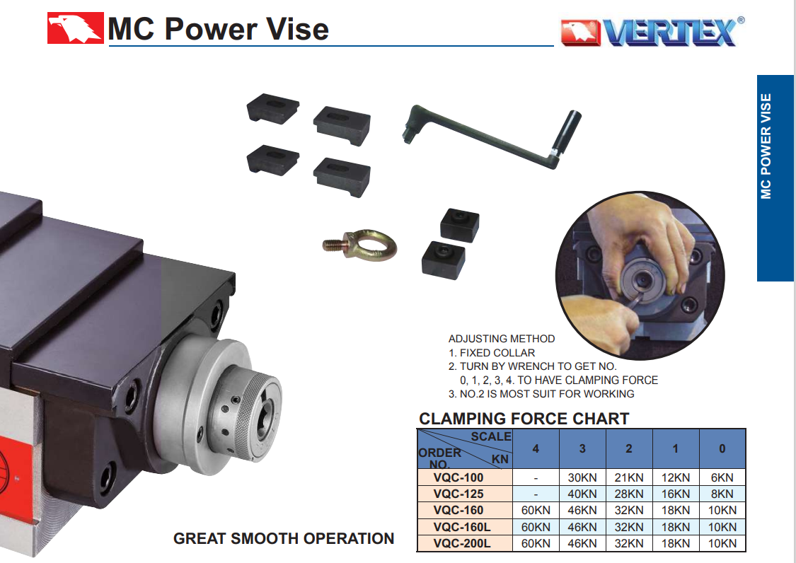 – Ê tô cường lực VQC- cho lực kẹp phôi chính xác từ: 600 Kgf – 6000 Kgf (Xem bảng lực kẹp với từng ê tô).