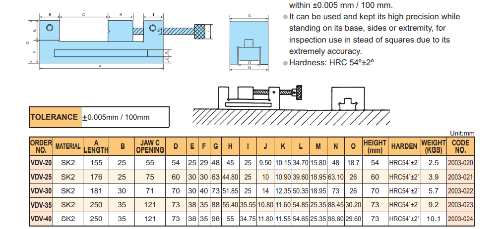 Ê tô máy mài Vertex VDV-20 dùng để gá kẹp các chi tiết trong quá trình mài.