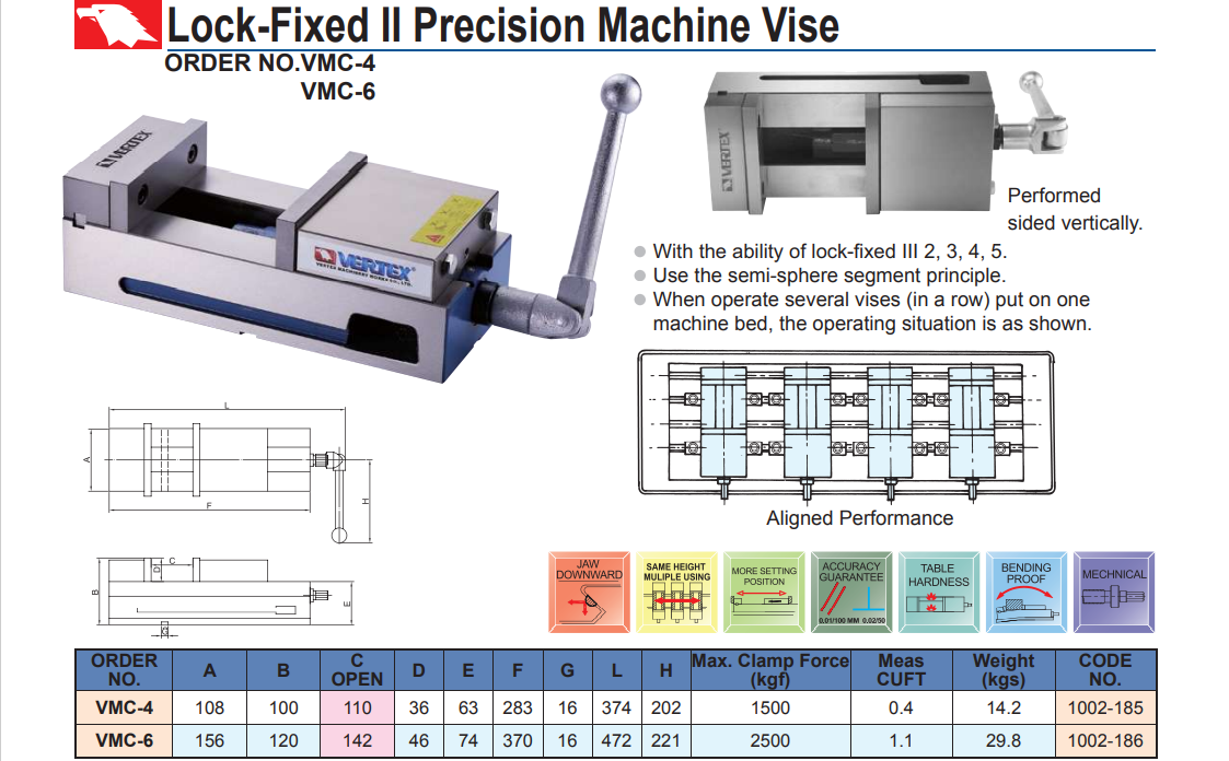 – Ê tô khóa cố định thích hợp nhất cho nguyên công khoan tải trọng nhẹ.