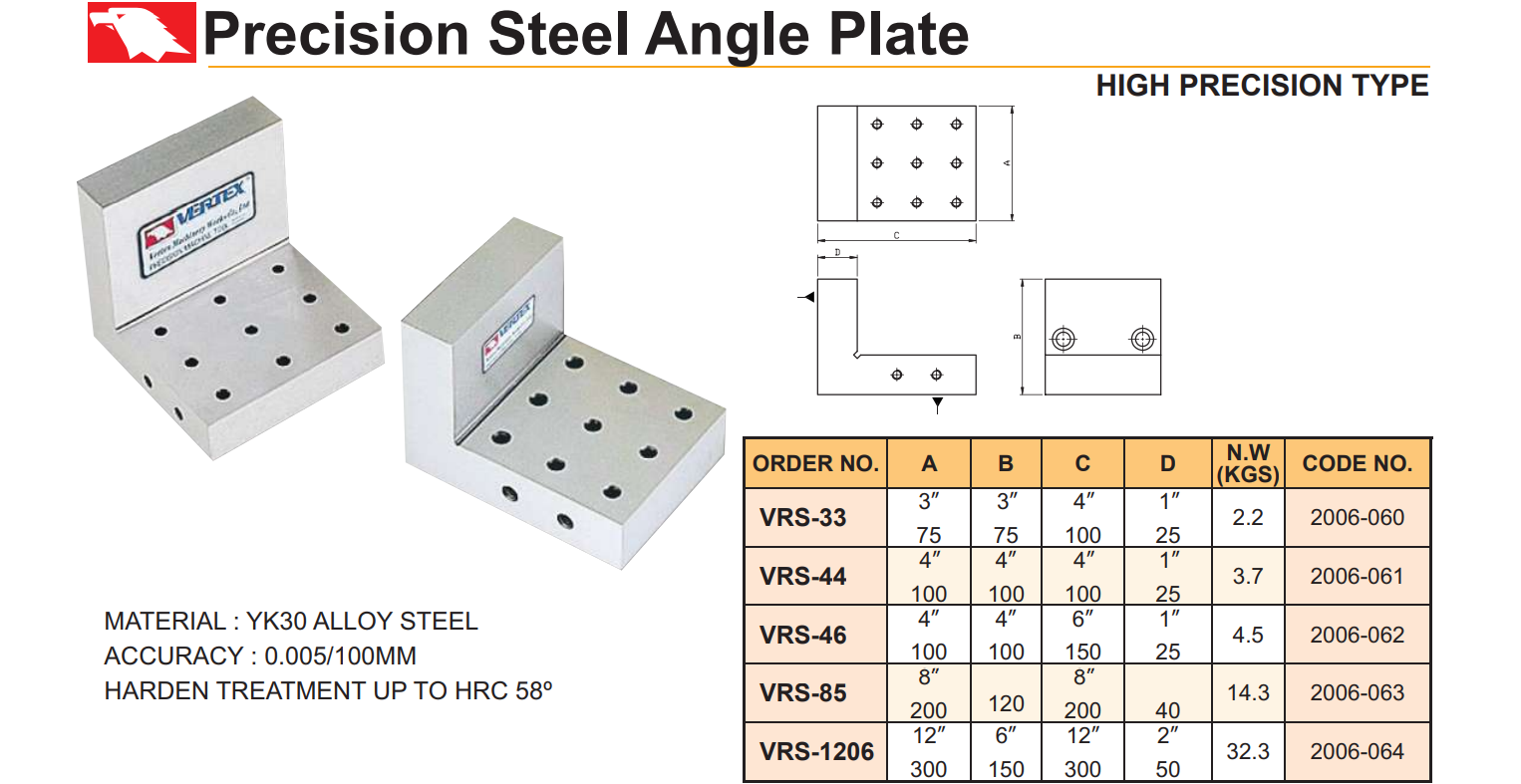 – Khối định vị vuông góc VRS-33, VRS-44, VRS-46, VRS-85, VRS-1206 của VERTEX được sử dụng để định vị và kẹp chặt chi tiết vuông góc với bàn máy khi gá kẹp chi tiết.
