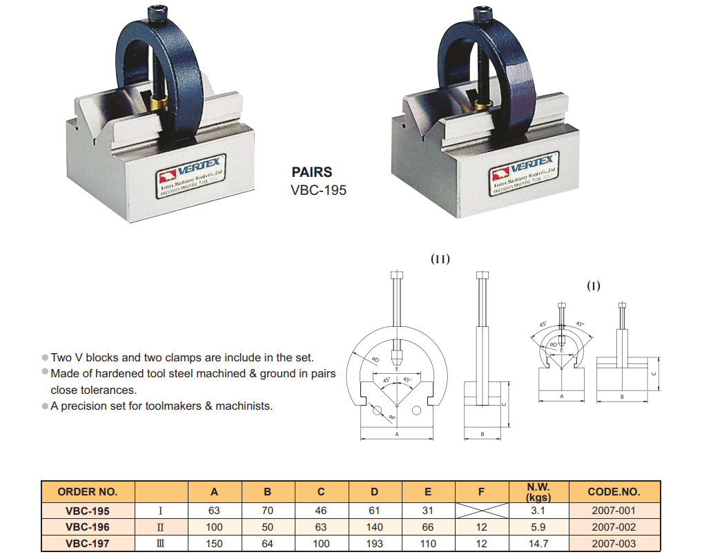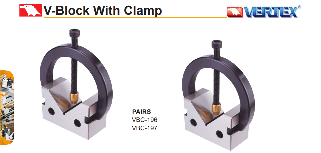 Khối V có kẹp Vertex VBC dùng gá kẹp chi tiết khi gia công góc trên máy mài, máy phay, máy khoan, vạch dấu…
