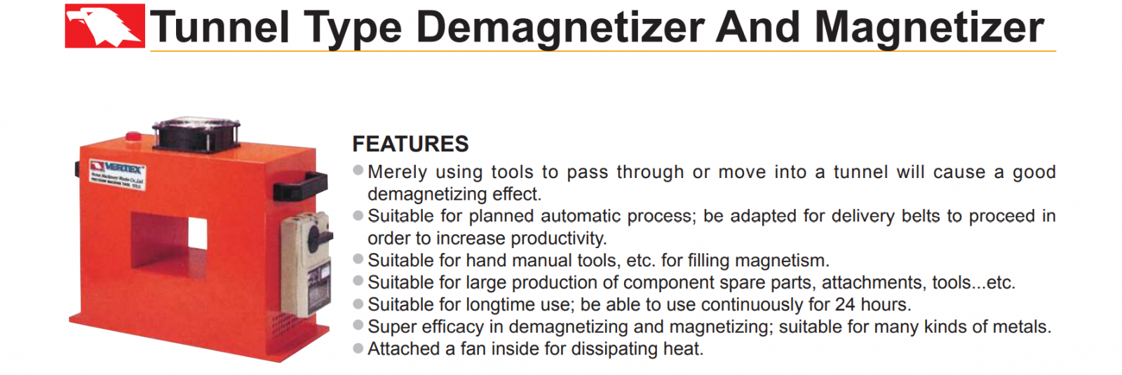 – Máy khử từ và tạo nhiễm từ VDM-150, VDM-250, VDM-450 của VERTEX dùng khử nhiễm từ hoặc tạo nhiễm từ cho hàng loạt chi tiết trên băng truyền.