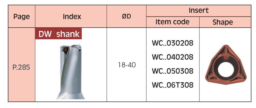 Mũi khoan gắn mảnh SHAN GIN DW shank , Mũi khoan DW shank , Holder DW shank