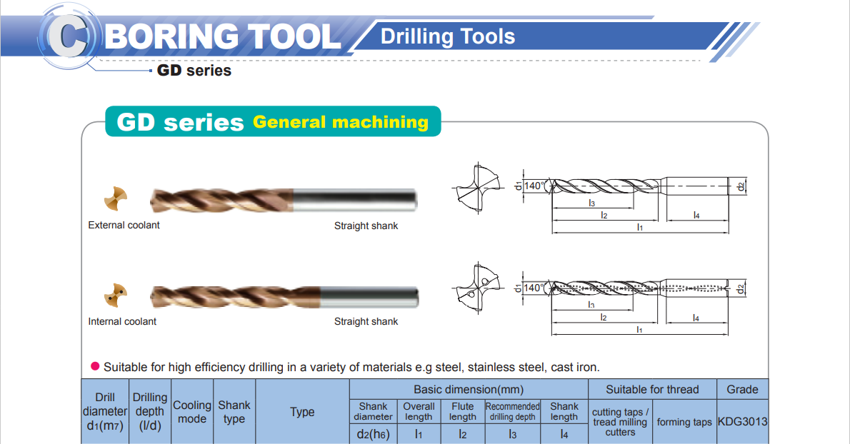 +. Tuổi bền cao hơn các dòng mũi khoan hợp kim của các đối thủ cạnh tranh: thường tuổi bền sẽ gấp 2 lần; 1,5 lần.
