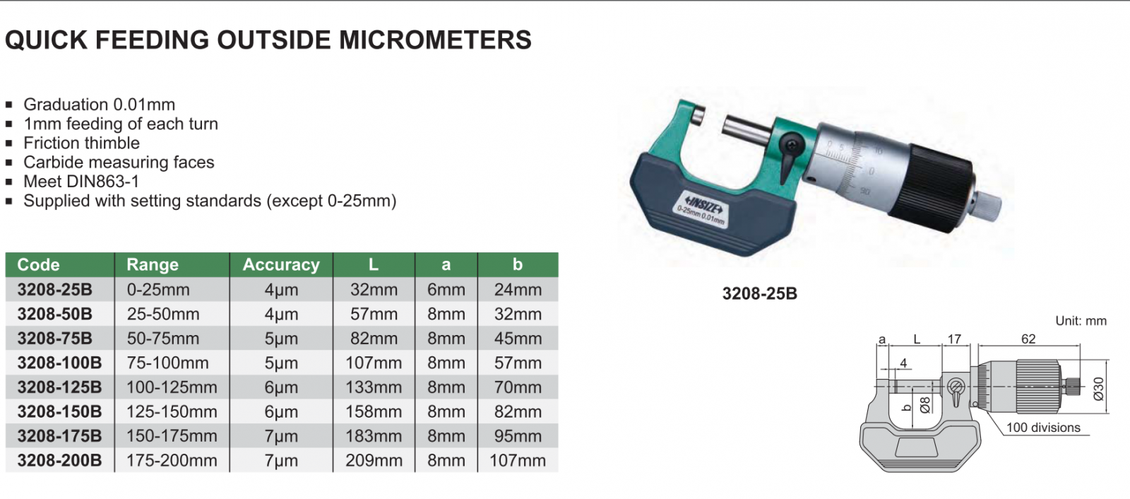 Panme cơ khí INSIZE là đồ dùng có nhiều chức năng phạm vi đo rộng, độ chính xác tương đối cao, dễ sử dụng, giá cả rẻ…