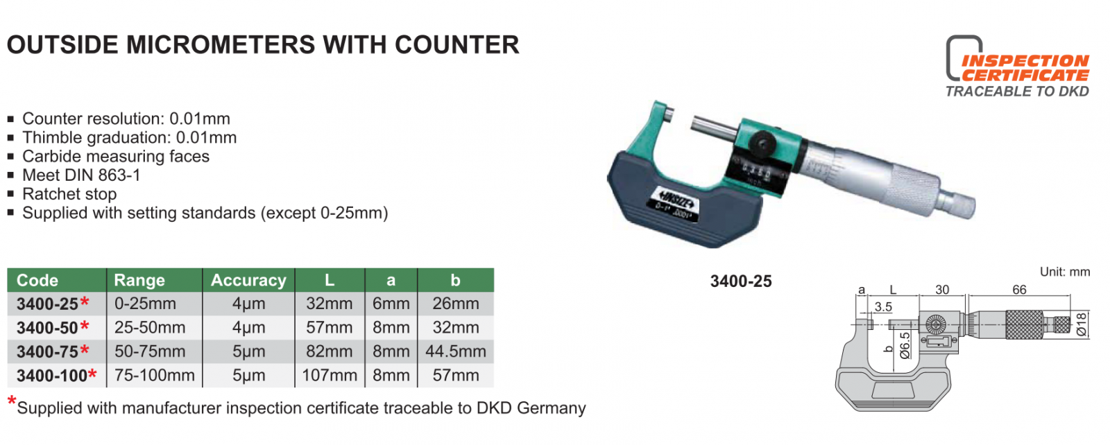 Panme cơ khí INSIZE là đồ dùng có nhiều chức năng phạm vi đo rộng, độ chính xác tương đối cao, dễ sử dụng, giá cả rẻ…