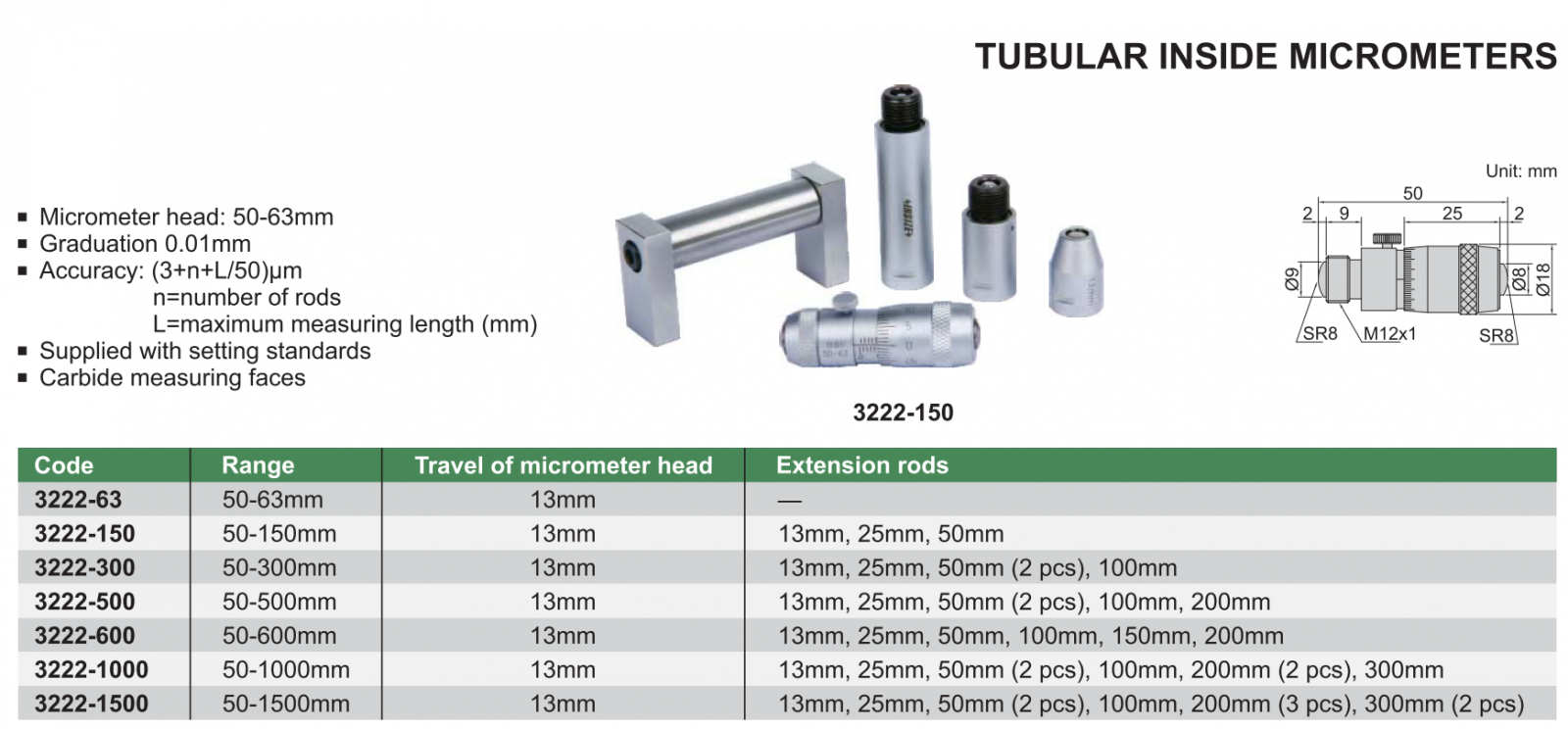 Panme đo trong dạng ống INSIZE là đồ dùng có nhiều chức năng phạm vi đo rộng, độ chính xác cao, dễ sử dụng, giá cả rẻ…