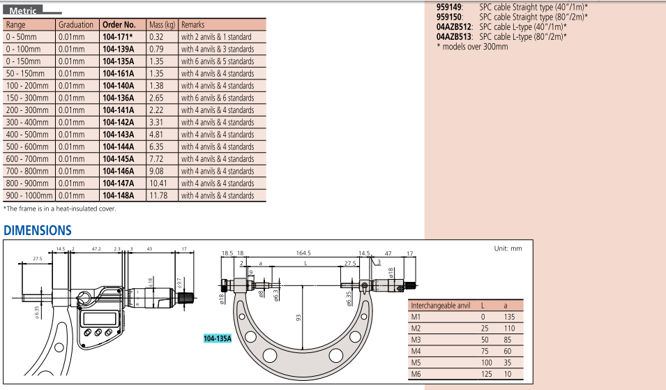 Mã hàng 104-145A là dụng cụ đo panme cơ khí đo ngoài khoảng đo từ 600-700mm/0.01mm