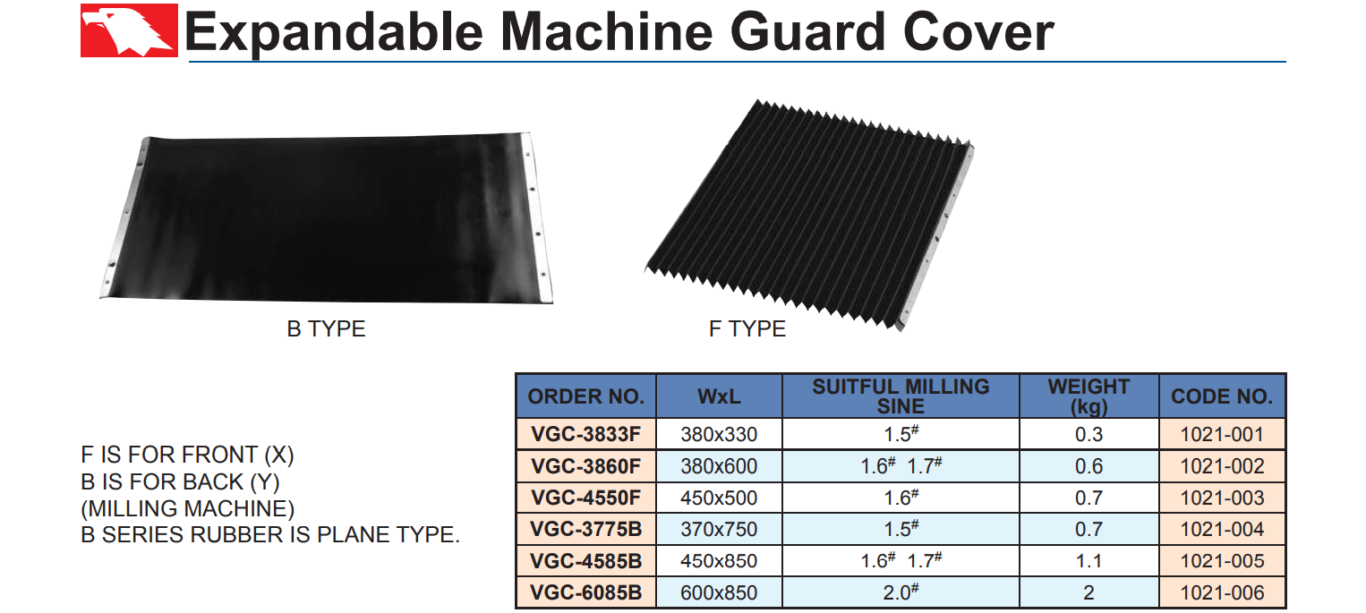 – Tấm chắn bảo vệ VGC-3833F; VGC-3860F; VGC-4550F; VGC-3775B; VGC-4585B; VGC-6085B của VERTEX dùng chắn bảo vệ phía trước và phía sau bàn máy phay.