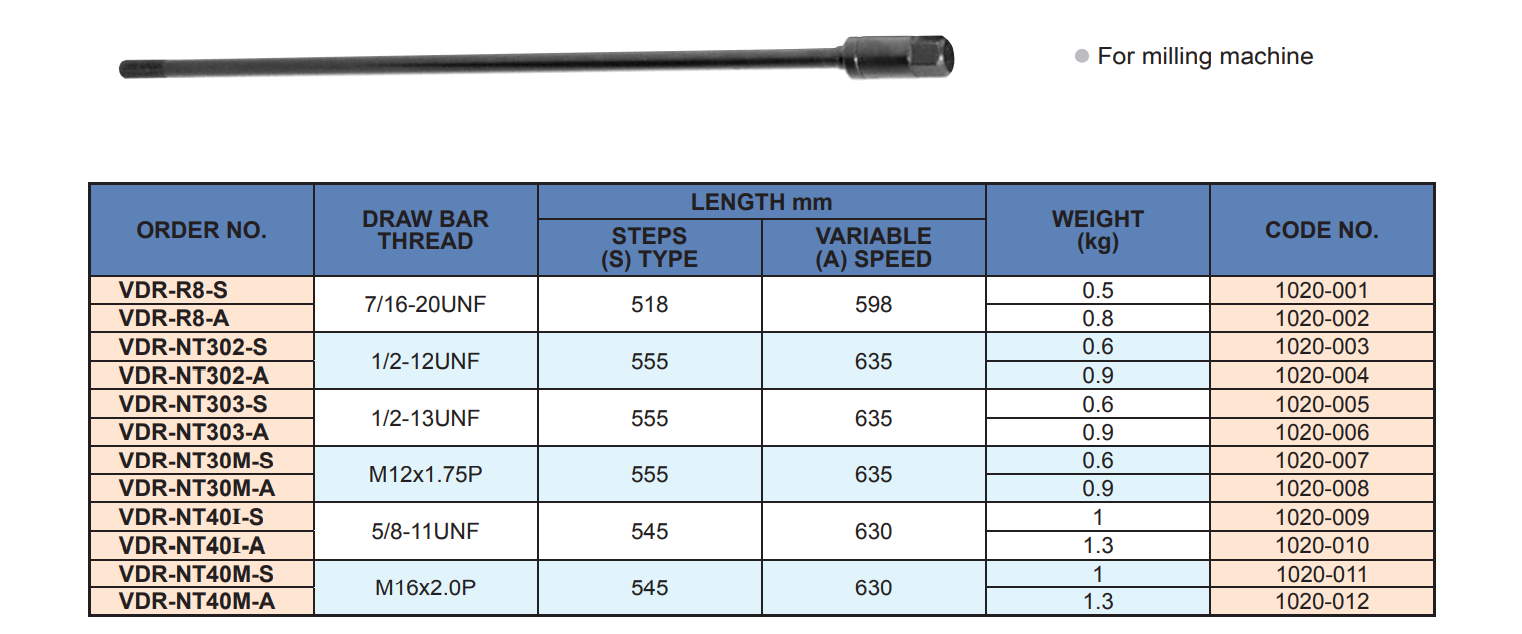 – Thanh rút kẹp bầu kẹp dao VDR của Vertex được sử dụng lắp với bầu kẹp và kẹp chặt chuôi bầu kẹp dao vào trục chính máy phay trên máy phay cơ có kiểu côn là R8, NT30, NT40.