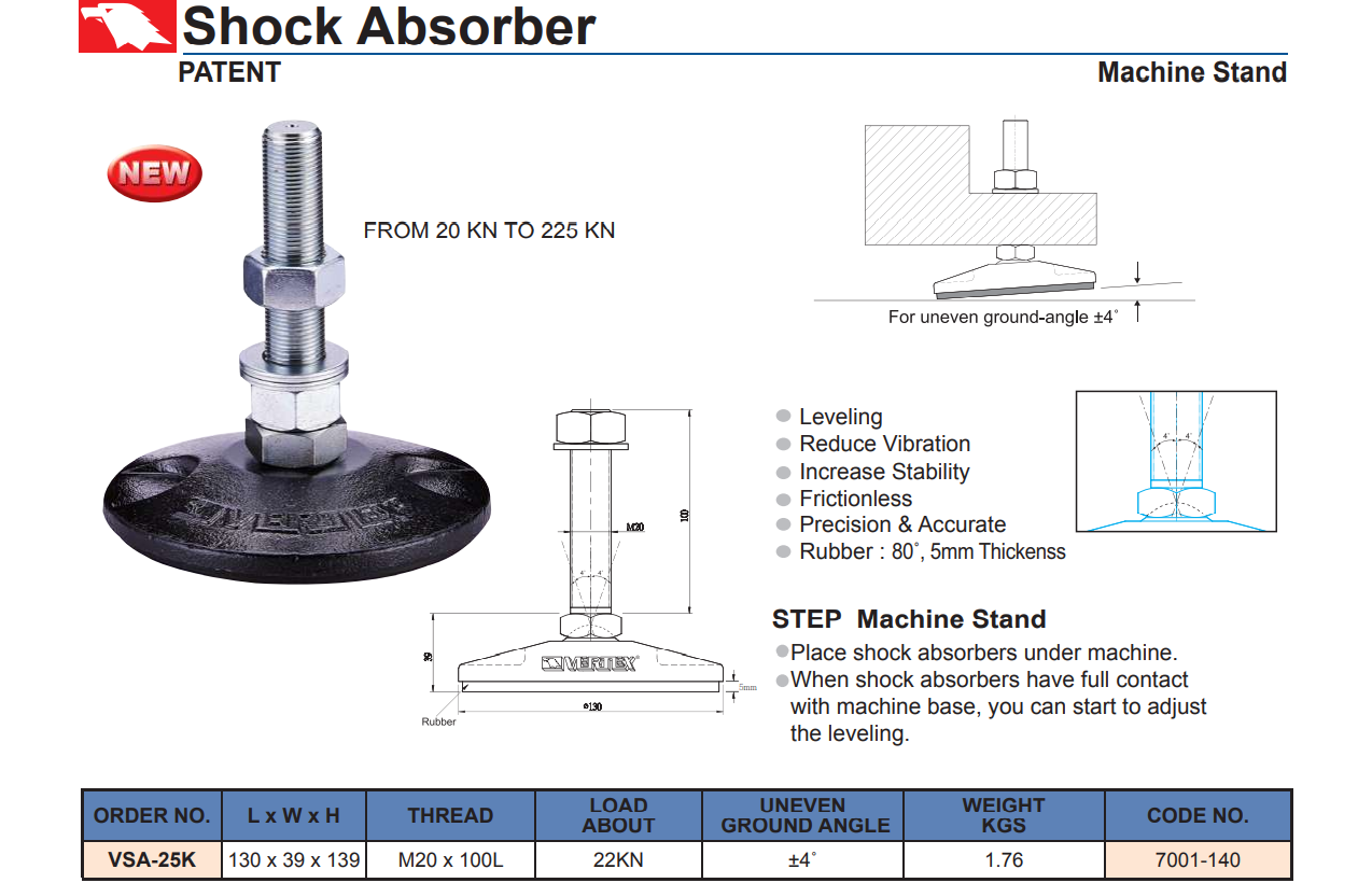 Thiết bị này có nhiều miếng đệm để hỗ trợ cho việc giảm chấn, giảm rung động, mặt khác nó được điều chỉnh bằng đai ốc rất dễ dàng cho người sử dụng.