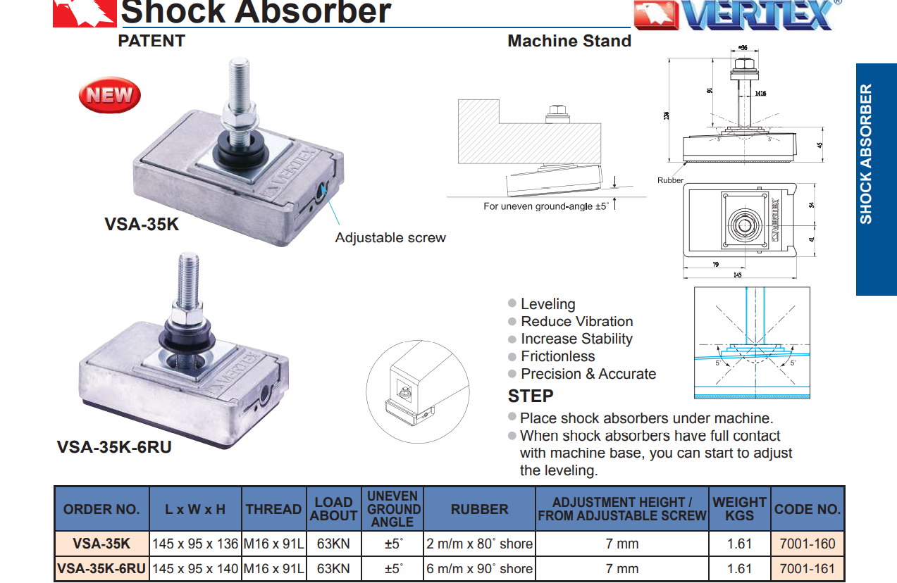 Thiết bị giảm rung động máy mã VSA-35K , VSA- 35K-6RU được hãng Vertex sản xuất với chất lượng cao, chuyên dùng cho việc giảm độ rung động trong quá trình gia công cơ khí.