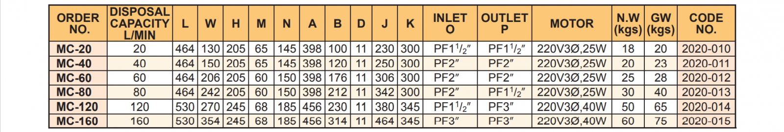 – Thiết bị lọc nước cnc bằng từ tính MC-20, MC-40, MC-60, MC-80, MC-120, MC-160 chỉ tách được phoi kim loại.