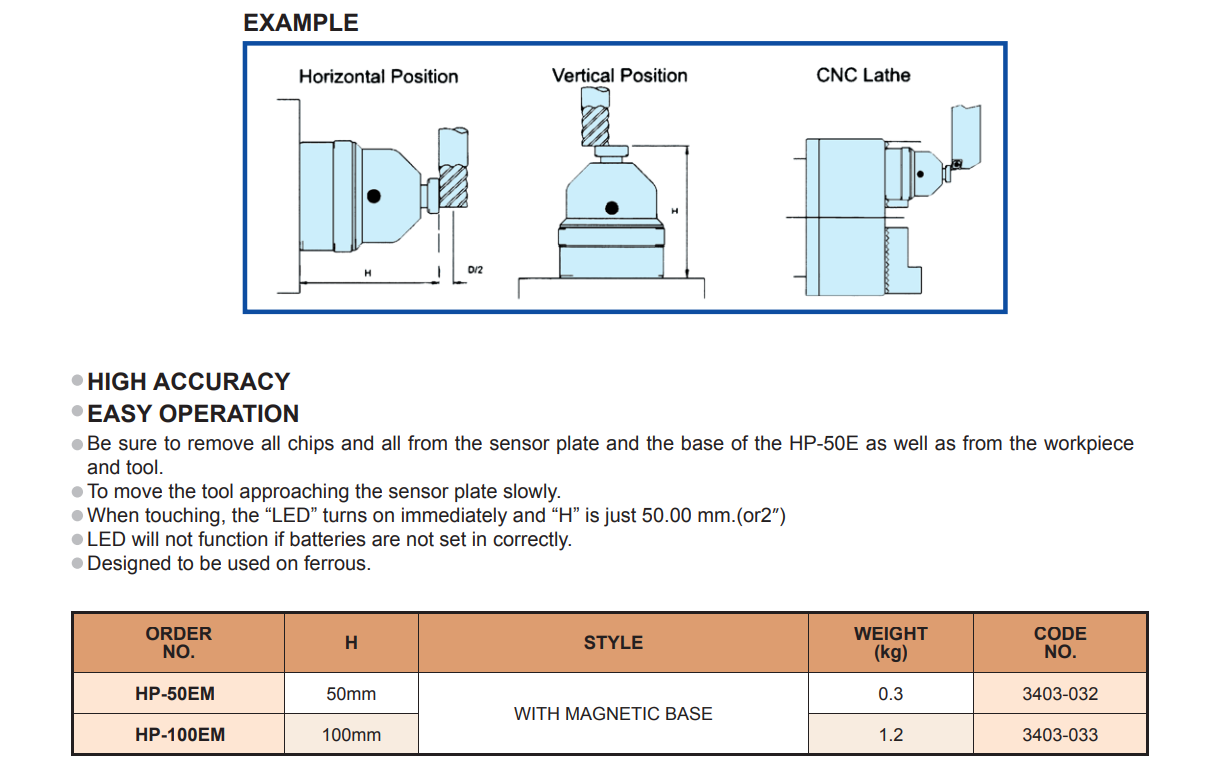 – Thiết bị thiết lập chiều cao dụng cụ HP-50EM, HP-100EM: