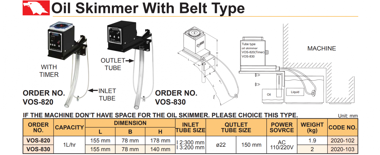 – Thiết bị thu dầu kiểu dây ống VOS-820, VOS-830 của VERTEX sử dụng để thu dầu máy nổi trên các dung dịch tưới nguội, dầu cắt gọt, nước làm mát,…